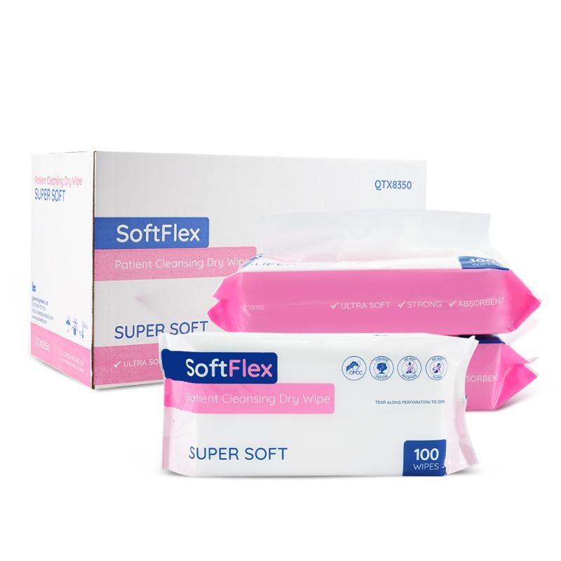 Viscose enhanced dry patient cleansing wipes utilising spunlace technology. These premium ultra soft wipes are perfect for daily cleansing within a healthcare environment.